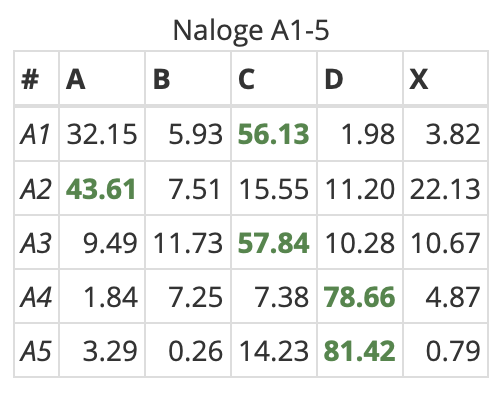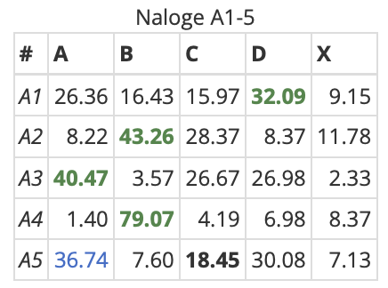 Frekvenca odgovorov pri A nalogah: