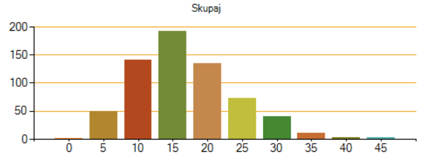 Porazdelitev po skupnih doseženih točkah: